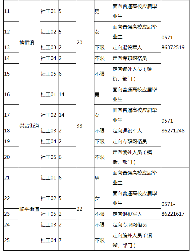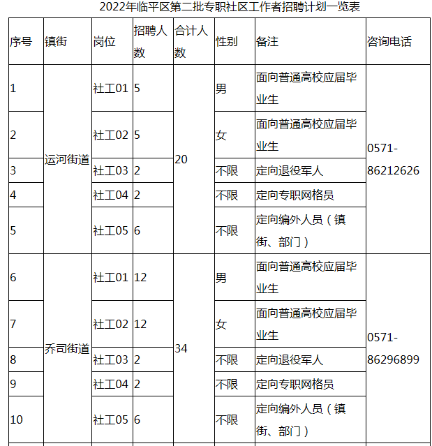 附件:1.2022年臨平區第二批專職社區工作者招聘計劃一覽表