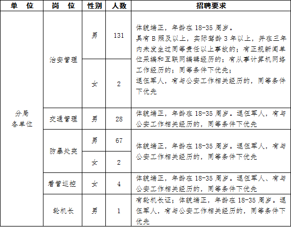 1、公安類或政法類院校畢業生,部隊退役士兵,見義勇為積極分子和先進個人,具有與公安工作相關經歷的以及在職公安民警的配偶、子女;