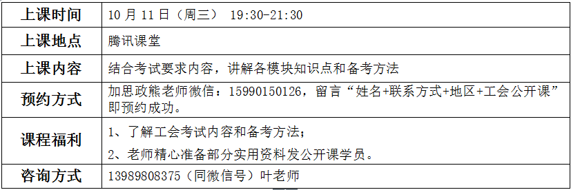 加思政熊老師微信:15990150126,留言“姓名+聯系方式+地區,+工會公開課”即預約成功。 |